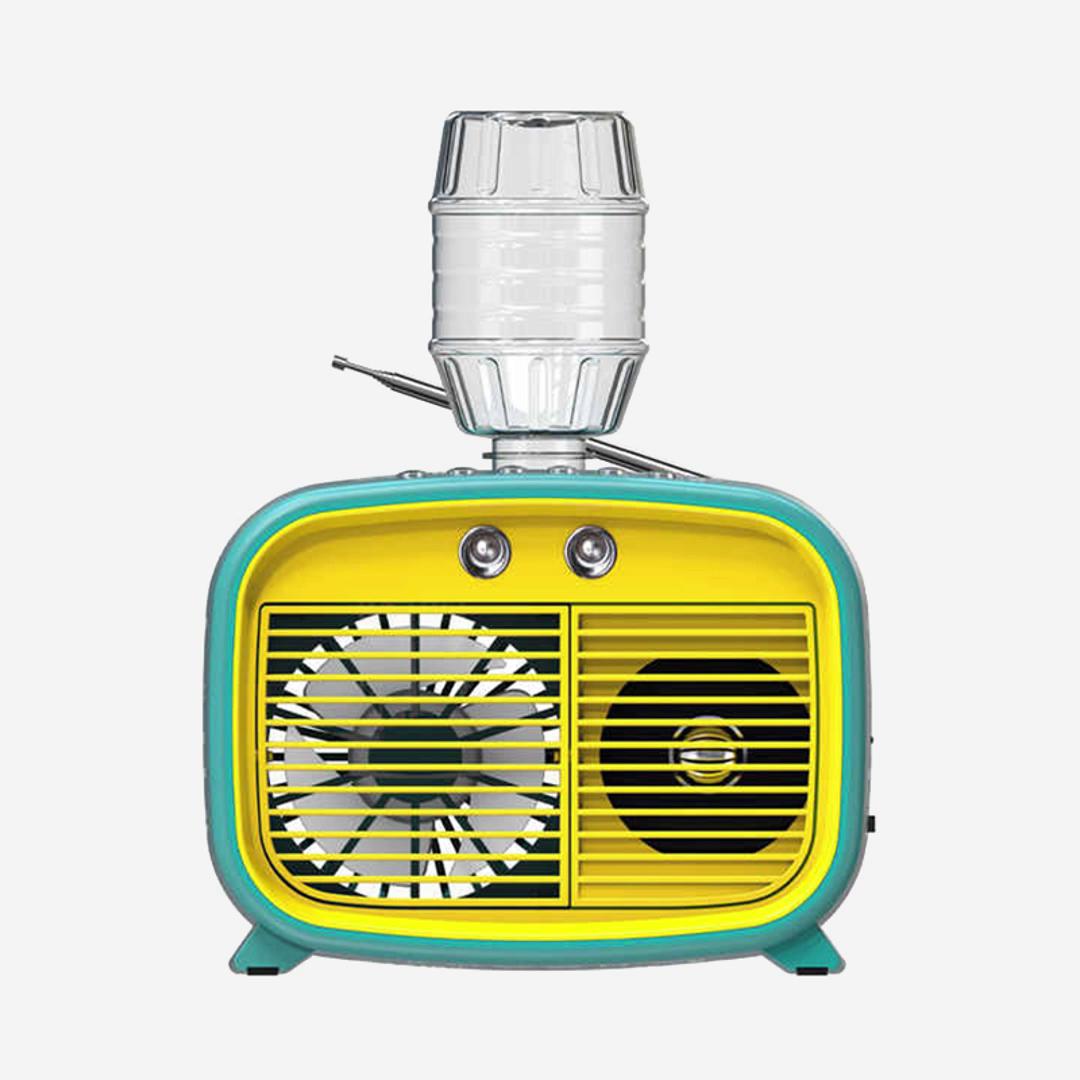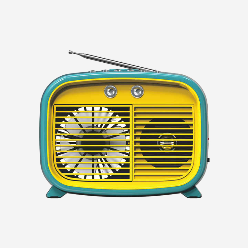 Fan Radio with Misting Spray and LED Light – Rechargeable and Portable