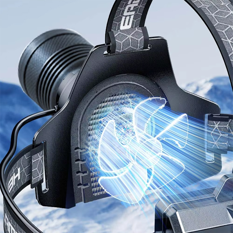 Cooling LED Headlamp with Fan – Rechargeable, Waterproof, Adjustable Beam for Outdoor Work & Camping